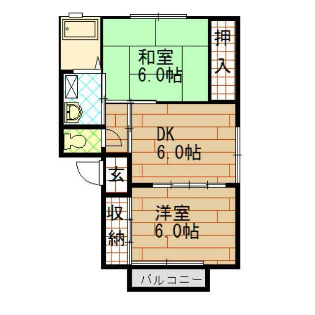 | 間取り | 2DK(和6 洋6 DK6) | 主要採光面 | 南 |