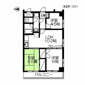 | 間取り | 3LDK(LDK10.2、洋6・4.5、和6) | 主要採光面 | 西 |