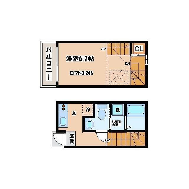 | 間取り | 1K(洋6.1 ロフト3.2) | 主要採光面 | 南 |