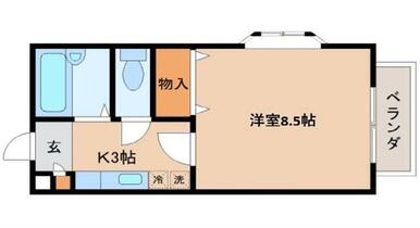 | 間取り | 1K(洋8.5 K3) | 主要採光面 | 南 |