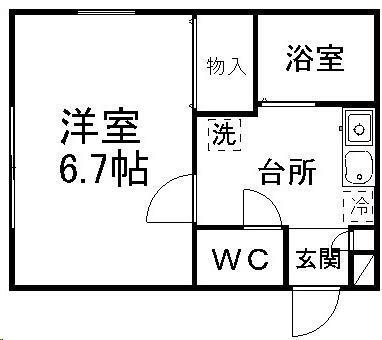 | 間取り | 1K(洋6.7 K2.9) | 主要採光面 | 東 |